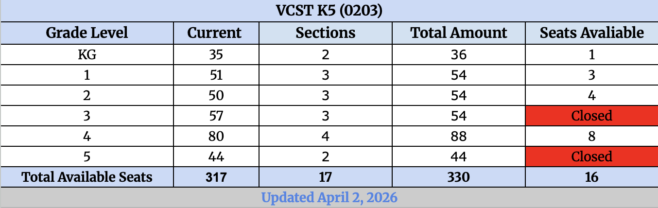 VCS K5 2025-2026 Budget